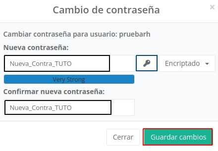 2. Para finalizar, debes hacer clic en «Guardar cambios» y listo, habrás cambiado la contraseña de tu usuario.