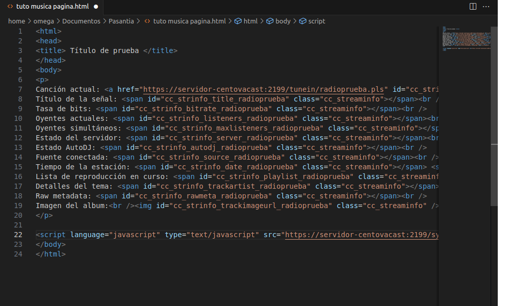 Paso 6: Cuando termines, deberá guardar los cambios en el archivo de tu página web y subirlo al servidor, el código HTML debería ser similar al siguiente: