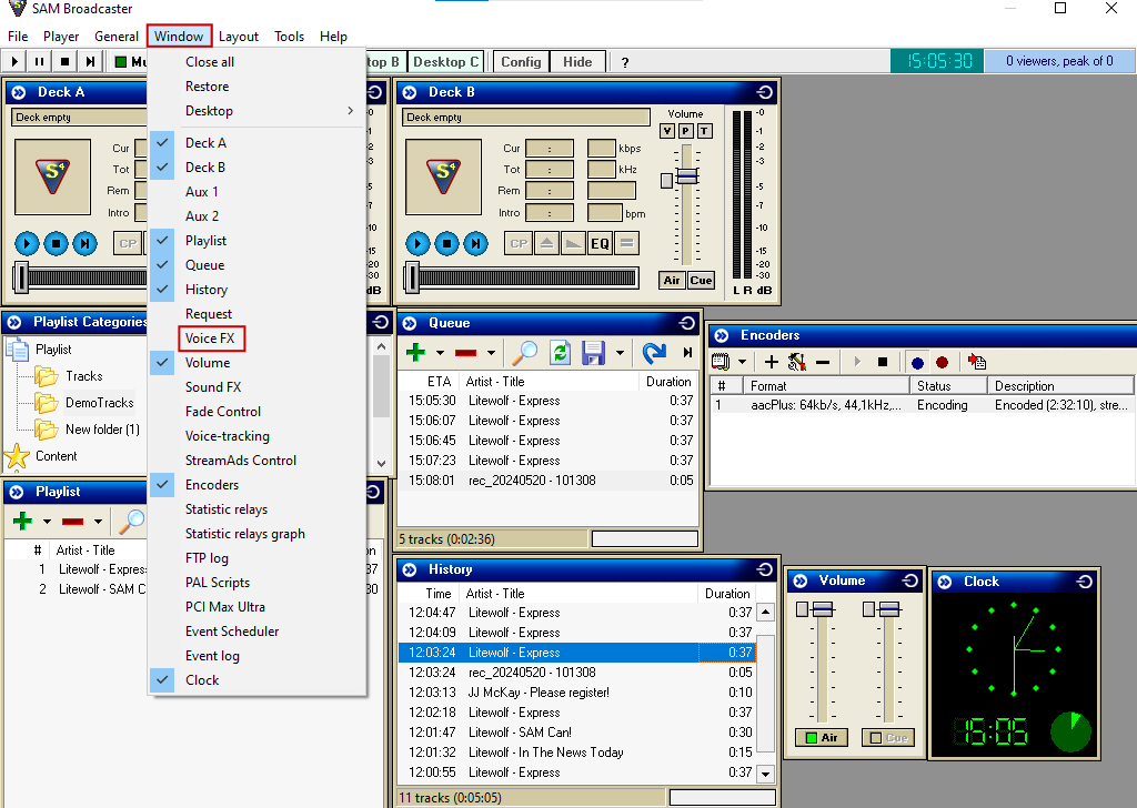 Paso 2: Una vez dentro, se dirigirá a la pestaña llamada «Voice FX». En el caso de que no le aparezca esta pestaña, la deberá agregar de la siguiente manera: