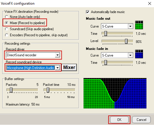 1. En el apartado «Voice FX» seleccionará cual es el micrófono que desea utilizar. Marcará la opción «Mixer».