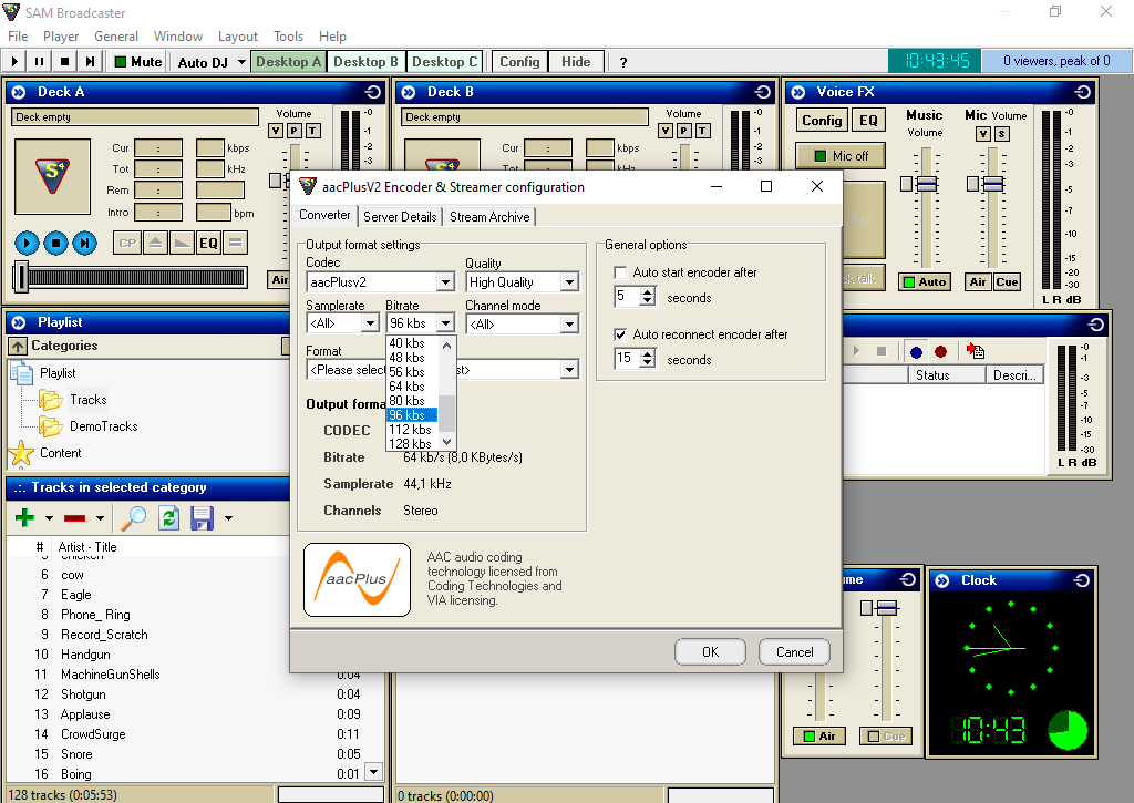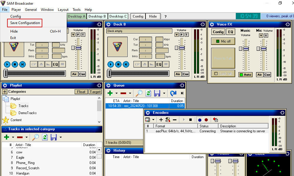 ¡¡IMPORTANTE!! Para una correcta utilización de las Decks, previamente deberá cargar una canción a la «Deck A» y luego comenzar la transmisión desde la pestaña «Encoders». Si comienza la transmisión sin haber cargado una canción en la primera Deck, es posible que en su Sam Broadcaster ocurra alguna falla .