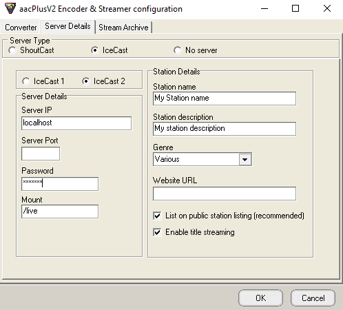 «Station name»: Aquí colocará el titulo que llevará su transmisión.