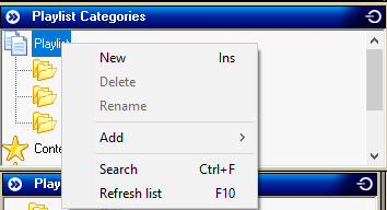 Paso 3: En esta pestaña escogerá cual lista de reproducción transmitirá. Si necesita agregar una lista de reproducción nueva hará clic derecho sobre «Playlist» y dará nuevamente clic en «New». Aquí tendrá la posibilidad de crear una lista de reproducción que le sirva para programaciones predeterminadas, por ejemplo: En una lista llamada “sábado”, iría su programación de los días sábados.