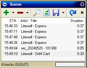 Este botón le permitirá agregar a la fila de reproducción, canciones, directorios, urls, playlist, etc.