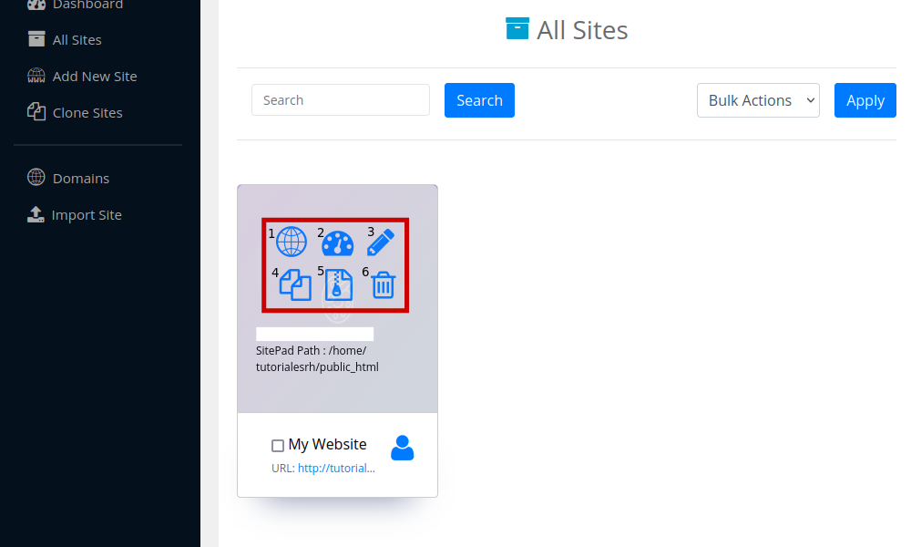 1. Esta opción es para visualizar el sitio web recientemente creado.