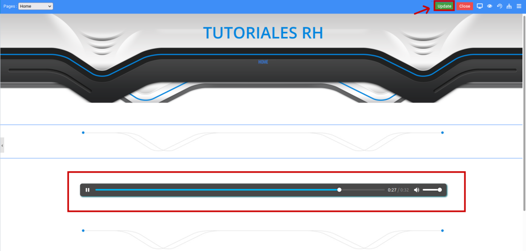 Una vez pegado el código HTML, se verá de la siguiente manera: (Ejemplo realizado con streaming de Radio, en el caso de video, se visualizará un recuadro con su transmisión)