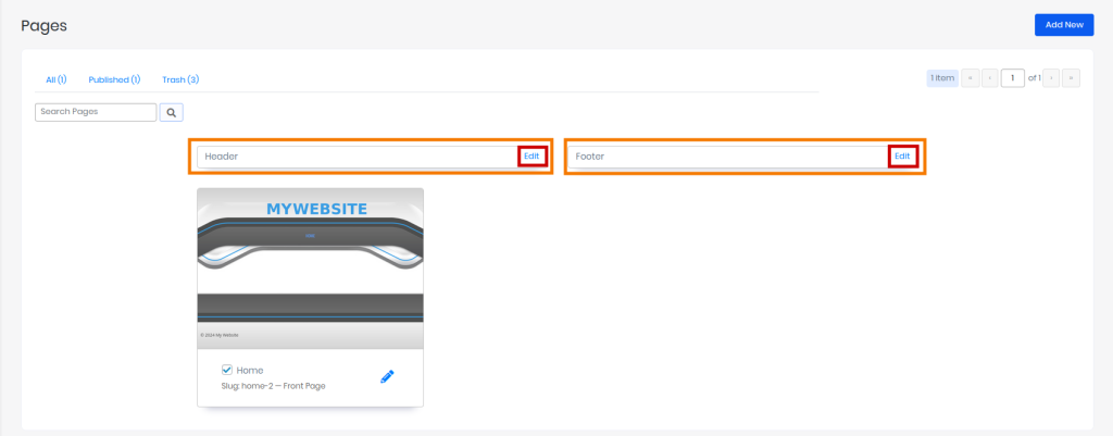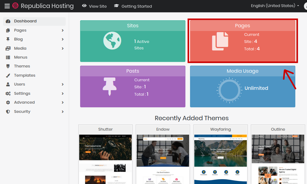 Paso 7: Para comenzar a editar su sitio, deberá ingresar a la «opción 2«. Se abrirá una nueva ventana en la cual, deberá ingresar dentro del menú «Pages«. Tal como se ve en la siguiente imagen: