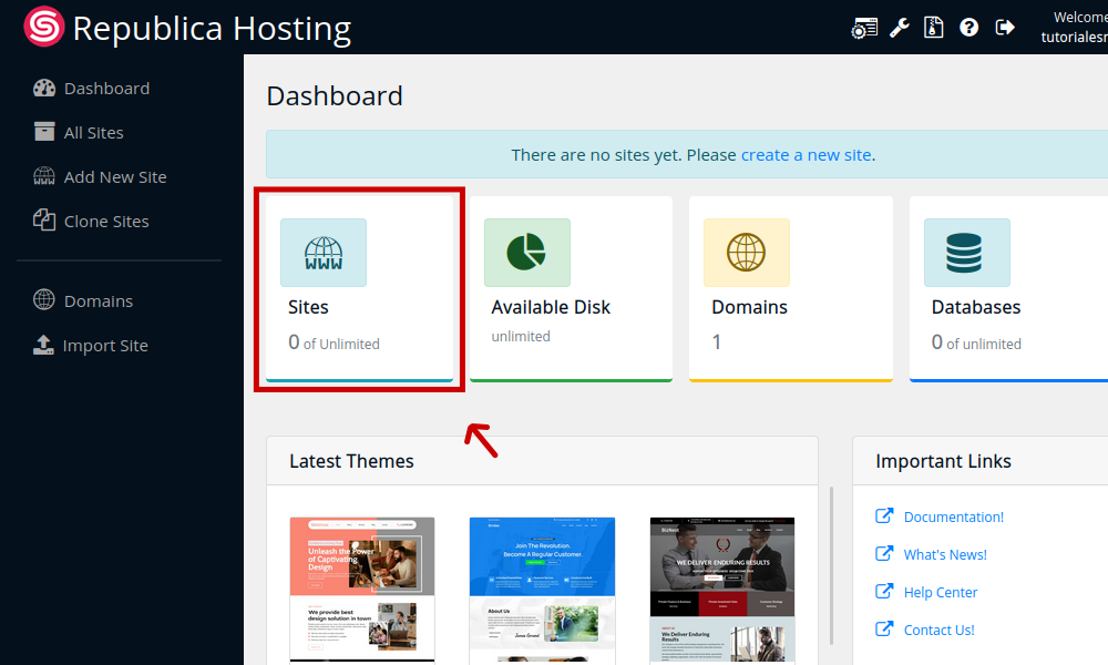 Paso 1: Una vez dentro del constructor de sitios (También llamado SitePad), lo siguiente que deberá hacer es ingresar en el apartado «Sites«