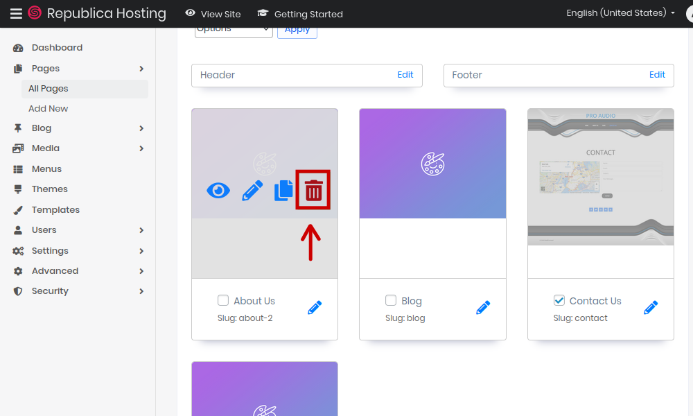 Paso 9: Una vez eliminadas las páginas, podrá comenzar a editar su sitio web