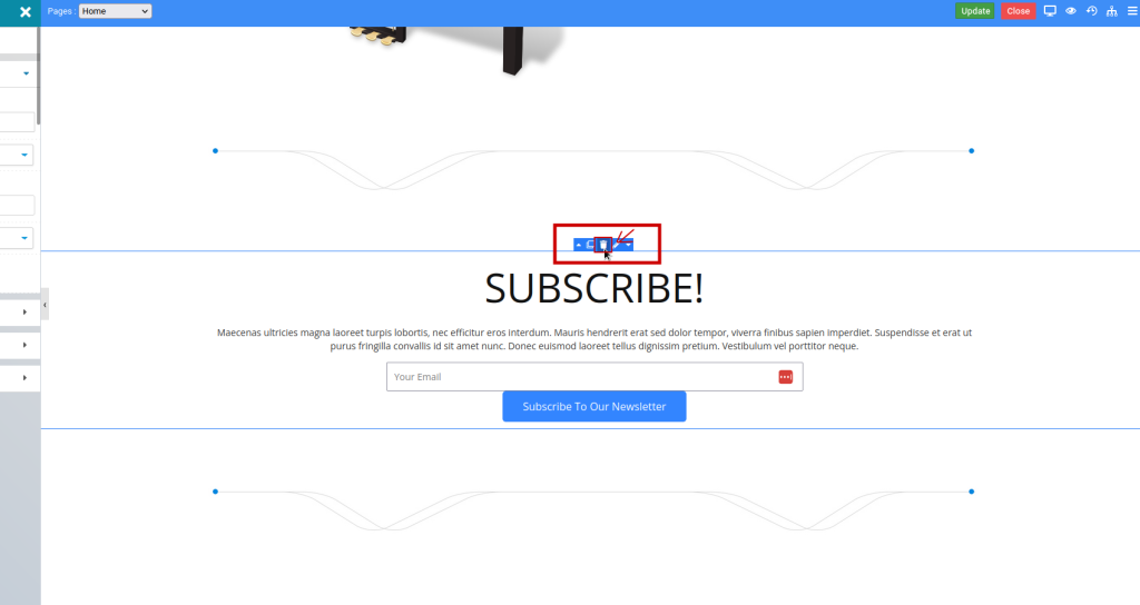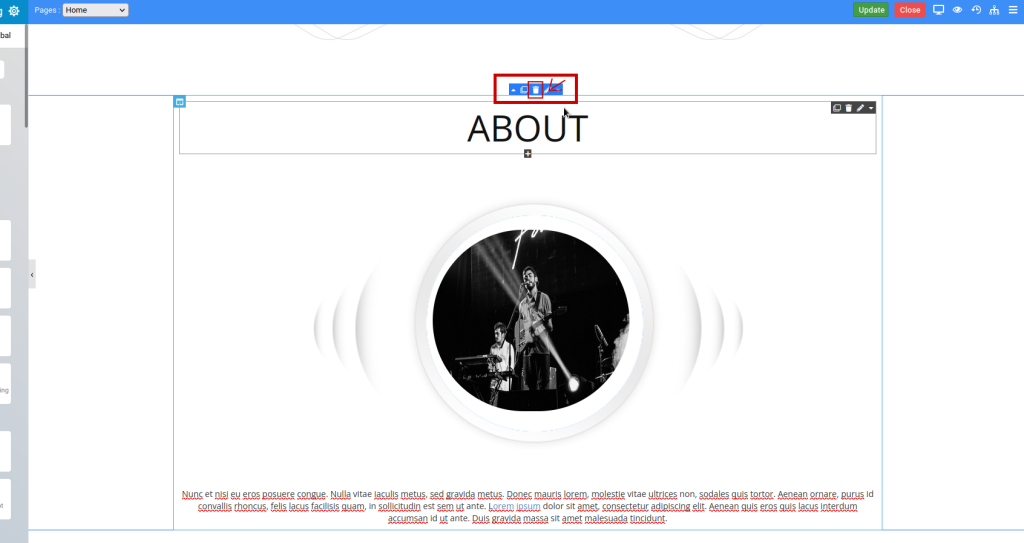 Notará que al pasar el puntero del mouse por las distintas imágenes y campos de su sitio, se mostrarán pequeñas ventanas de configuración/edición.