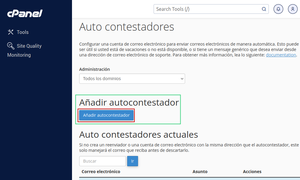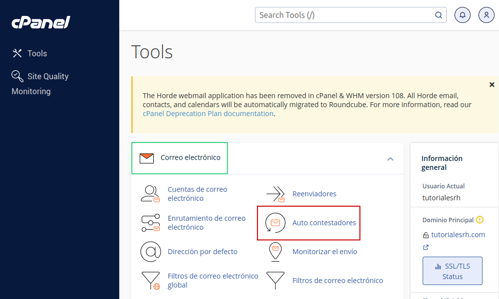 Paso 3: Una vez dentro, deberá ingresar al apartado “Correo electrónico”, luego a la opción “Auto contestadores”.