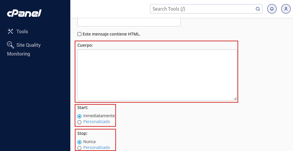 Este mensaje contiene HTML: Esta opción servirá si desea agregar una firma o algún contenido en HTML en su autorespuesta.