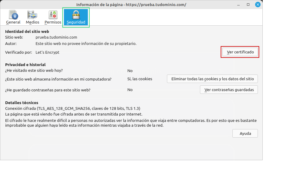 Chequeará el certificado desde el navegador web: >> Candadito >> conexión segura