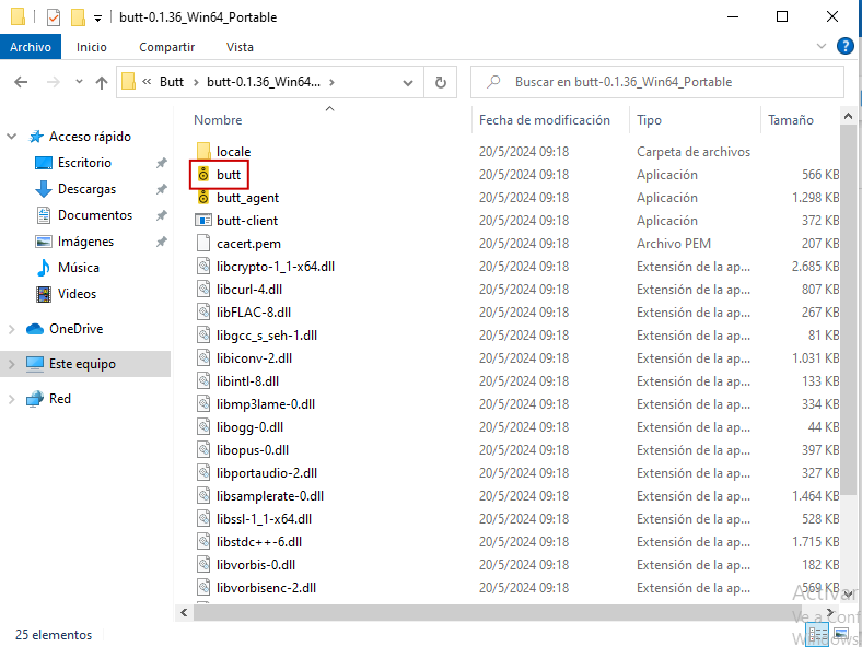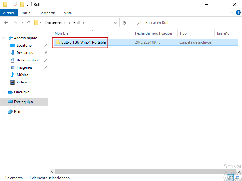Paso 2: Una vez extraído, se encontrará con la carpeta llamada «Butt», va a ingresar a esta y luego ingresará en la siguiente carpeta donde se encontrará con la aplicación.