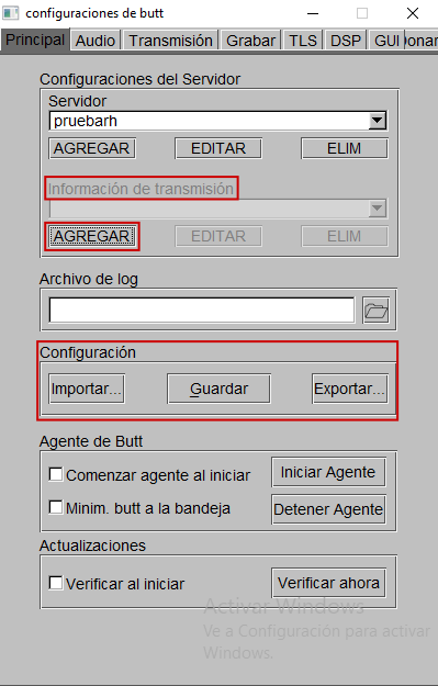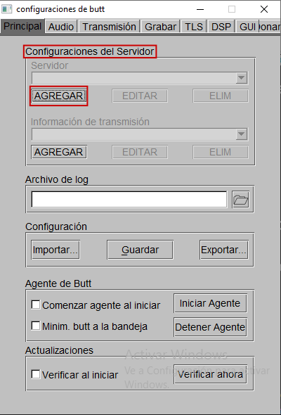 Paso 5: Al haber ingresado en «Config», se encontrará en las configuraciones principales, marcará «Agregar», dentro de las «Configuraciones del servidor».